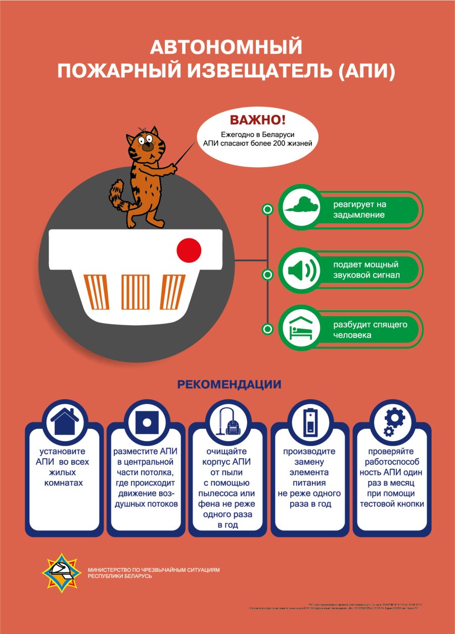 В целях повышения уровня безопасности населения и предупреждения гибели людей при пожарах Министерство по чрезвычайным ситуациям Республики Беларусь проводит информационную кампанию, направленную на популяризацию автономных пожарных извещателей (АПИ).