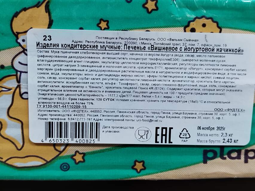 В ходе внеплановой проверки по результатам испытаний установлено, что изделие кондитерское мучное - печенье «Вишневое с йогуртовой начинкой», изготовитель ООО «ФУДТЕХ» (Россия, г. Пенза) не соответствует требованиям технических регламентов Таможенного союза по безопасности: в составе продукции обнаружено превышение максимального допустимого уровня синтетического красителя понсо 4R (Е124) в 2,8 раза. Госстандартом с 09...