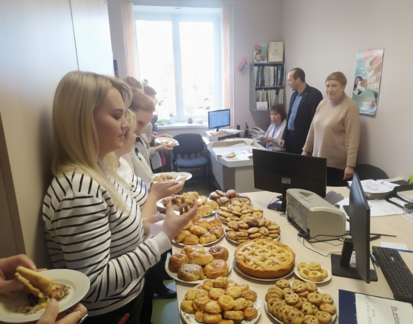 Сами же сотрудники приняли участие в конкурсе домашней выпечки — ароматные пироги, торты и печенье не только украсили обеденный стол, но и создали атмосферу уюта и заботы. Каждый рецепт был наполнен любовью, а дегустация превратилась в настоящий праздник вкуса!