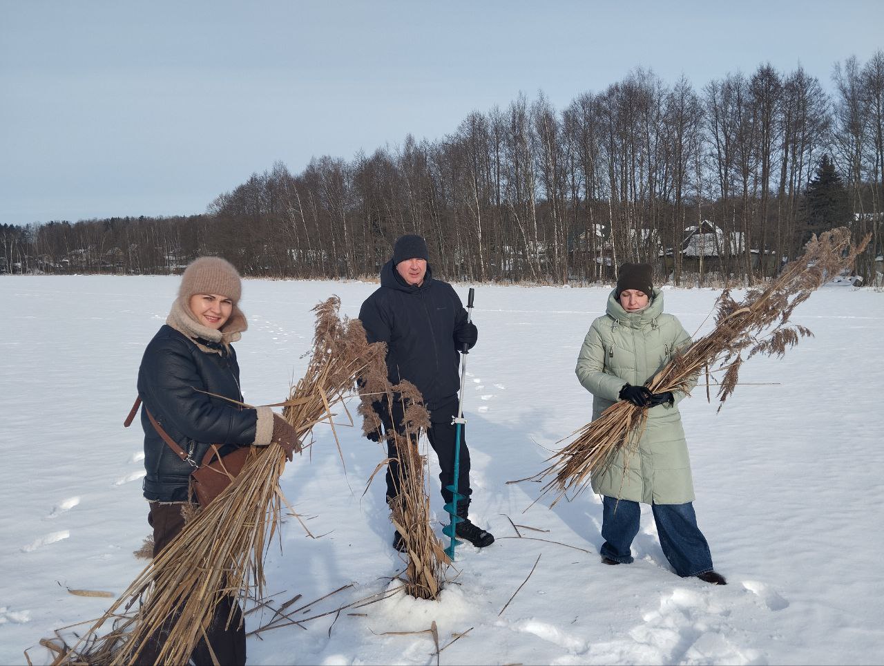 Участники акции подошли к делу со знанием экологии. В толще льда озера были проделаны десятки прорубей и лунок. Для того чтобы они не затянулись льдом при первых же заморозках, их заполнили снопами тростника. Такое взаимодействие ведомств — отличный пример того, как государственные структуры разного профиля могут эффективно работать над общей задачей.