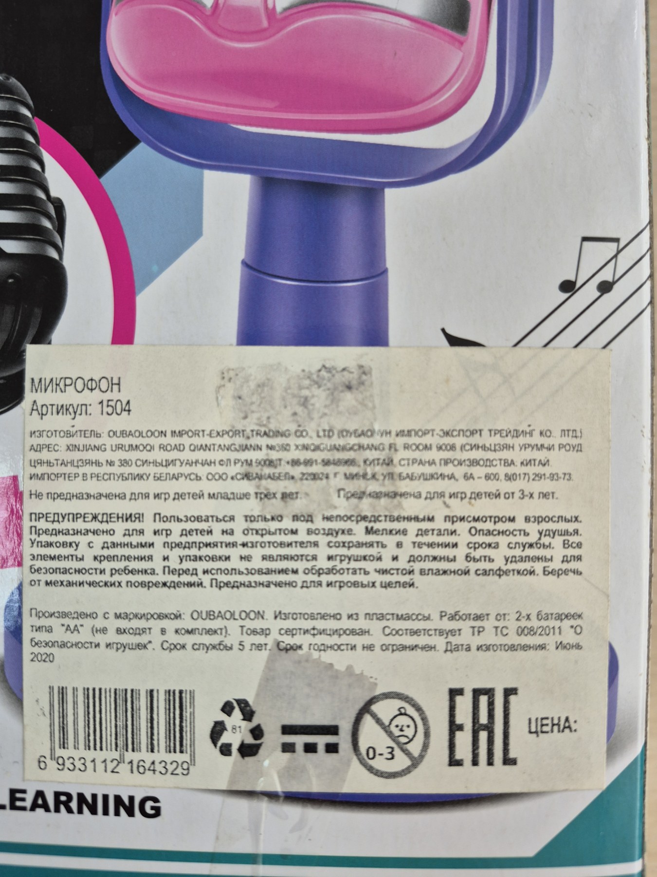 Игрушка детская «Микрофон» «OUBAOLOON» в реестре небезопасной продукции