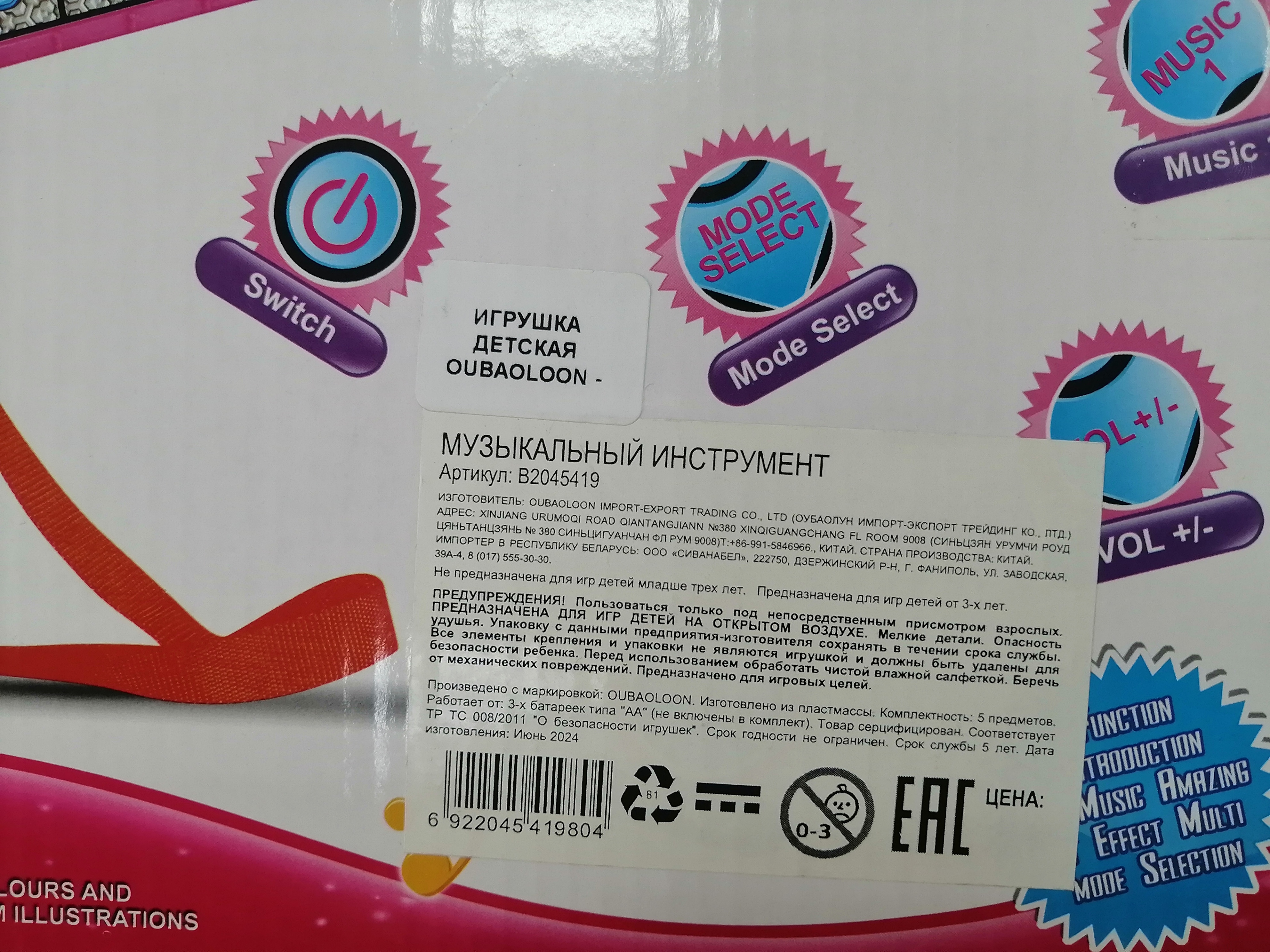 По превышению показателя гигиенической безопасности «эквивалентный уровень звука» Госстандартом запрещен ввоз и обращение на территории Республики Беларусь игрушек детских «OUBAOLOON» музыкальный инструмент артикул В2045419, для детей старше трех лет, изготовитель «OUBAOLOON IMPORT-EXPORT TRADING CO., LTD.» (Китай). Проконтролированному в г. Докшицы индивидуальному предпринимателю и поставщику продукции предписано изъять (отозвать из обращения) небезопасные игрушки.