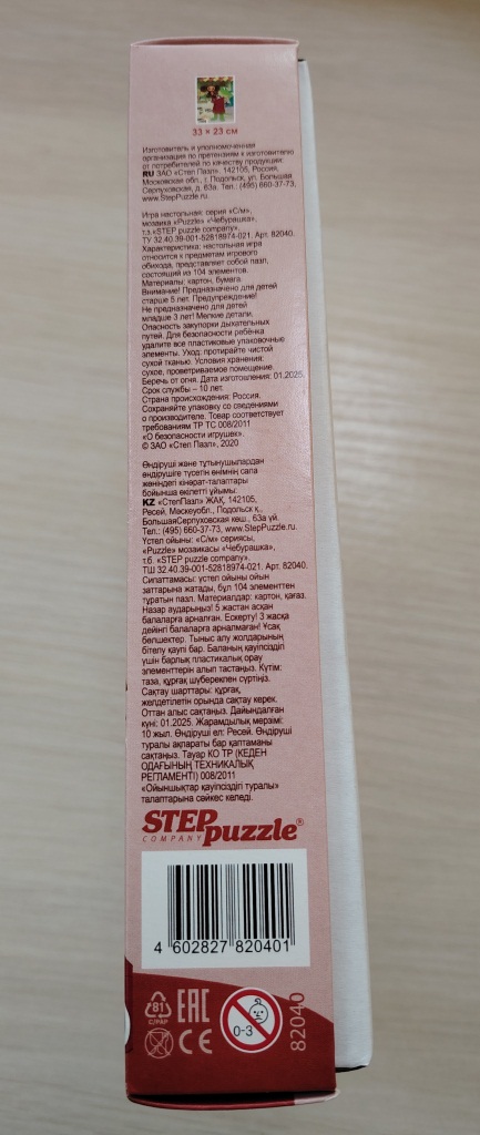 В декабре 2025 года по результатам проверки, проведенной Витебской областной инспекцией Госстандарта в г.п. Шарковщина, выявлены в реализации настольные игры с товарным знаком «STEP puzzle company», для детей старше 5 лет, материал – картон, изготовитель ЗАО «СТЕП ПАЗЛ» (Российская Федерация, г. Подольск), не соответствующие требованиям технического регламента Таможенного союза ТР ТС 008/2011 «О безопасности игрушек» по завышенному санитарно-химическому показателю гигиенической безопасности «уровень миграции формальдегида в воздушную среду»:
