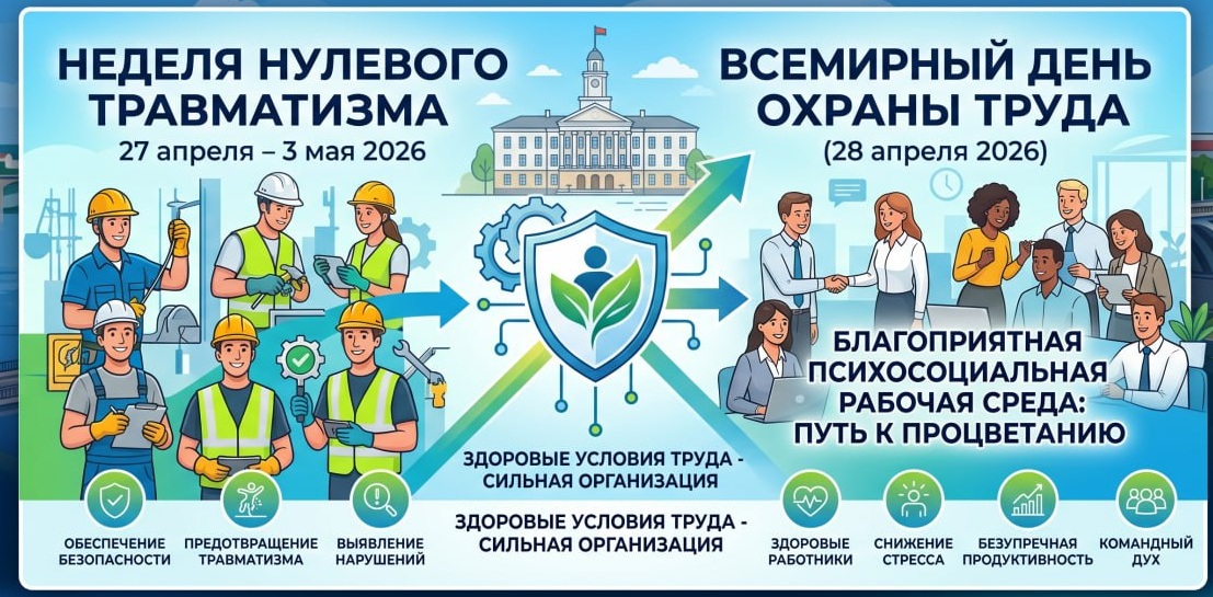 С 27 апреля по 3 мая 2026 года в Витебской областной инспекции Госстандарта проводится «неделя нулевого травматизма», а также мероприятия, посвященные Всемирному дню охраны труда.