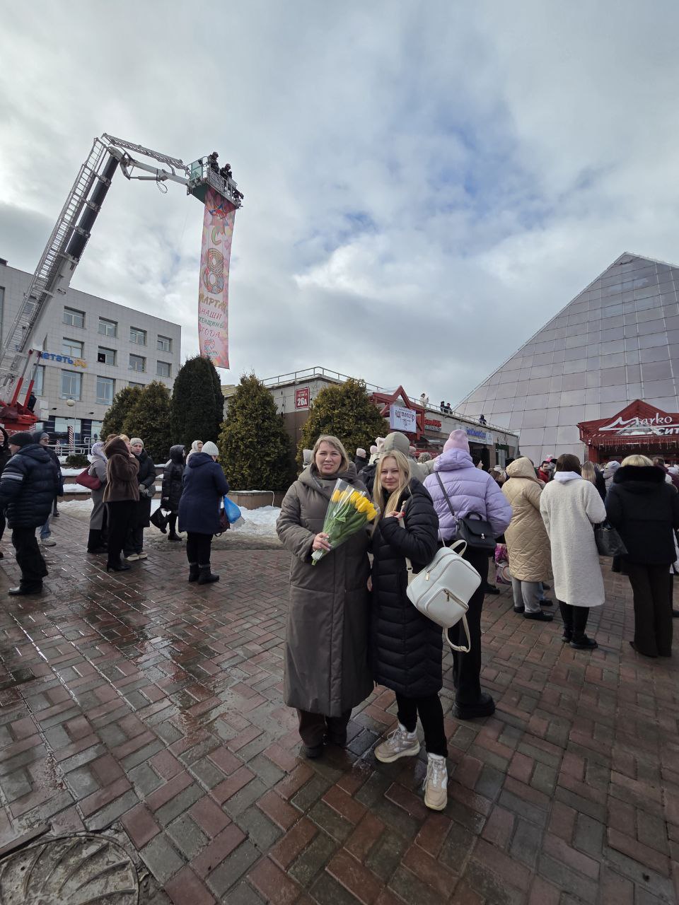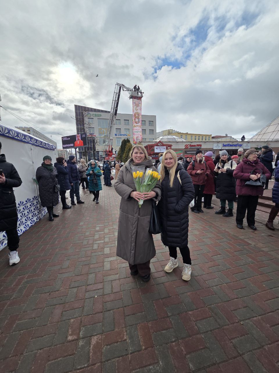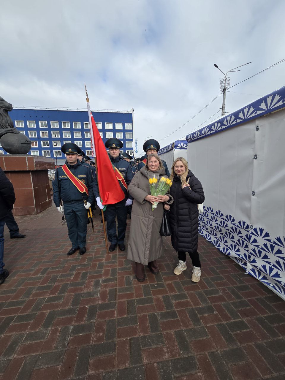 40 сотрудников Витебского областного управления МЧС исполнили музыкальную композицию, которая не оставила равнодушными представительниц прекрасной половины Витебщины. Частью номера стали выступления спортсменов-спасателей с пожарным инвентарем. С 30-метровой высоты автоколенчатого подъемника огнеборцы поприветствовали собравшихся женщин, а цветы на площадку привезли на специальном автомобиле быстрого реагирования. За время поздравления спасатели подарили пришедшим женщинам более трехсот тюльпанов.